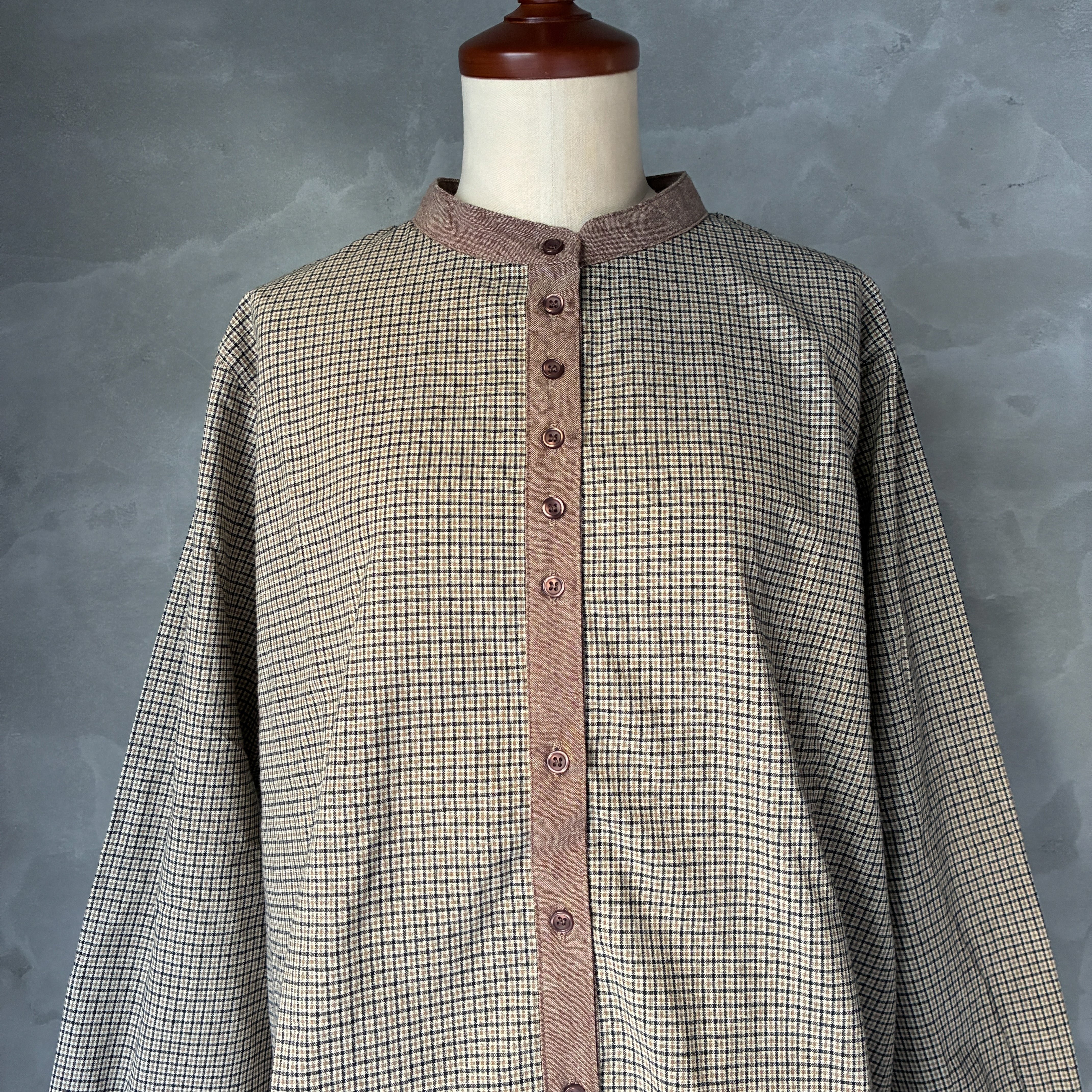 チェッククルーネックブラウス